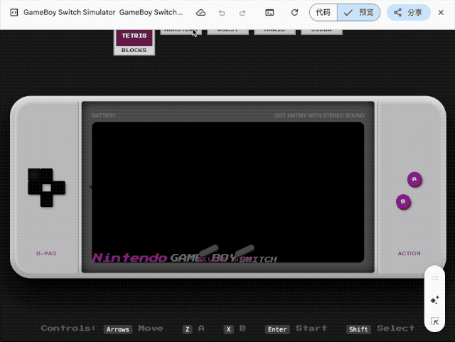 第一个挑战是让它在单个 HTML 文件中还原一台完整的 Game Boy 掌机, 内置《俄罗斯方块》《宝可梦红/蓝》等经典游戏, 所有操控必须同时支持键盘和触屏交互。
