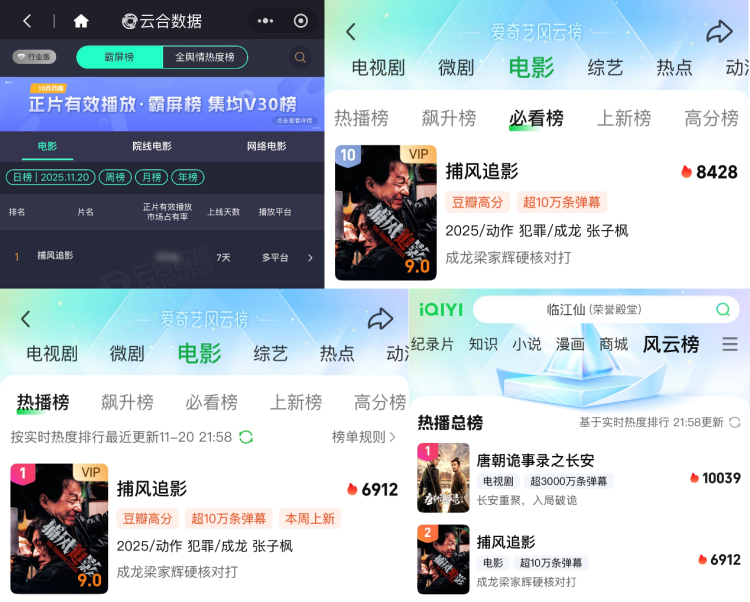 【环球网科技综合报道】自11月14日上线以来,爱奇艺出品电影《捕风追影》在全网持续热播,引发线上用户观影热潮。据云合数据显示,该片正片有效播放市占率连续7天位列院线电影全网榜和电影全网榜TOP1配资网站排名第一,强势登顶电影霸屏榜。影片也获得了爱奇艺VIP会员的高度认可和喜爱,爱奇艺内容热度值超过8400、评分高达9.0。上线首周,《捕风追影》持续登上爱奇艺热播总榜TOP2、爱奇艺电影热播榜TOP1,并跻身爱奇艺电影必看榜TOP10,成为继《哪吒2》之后,2025年院线电影爱奇艺内容热度峰值排名第二的影片。